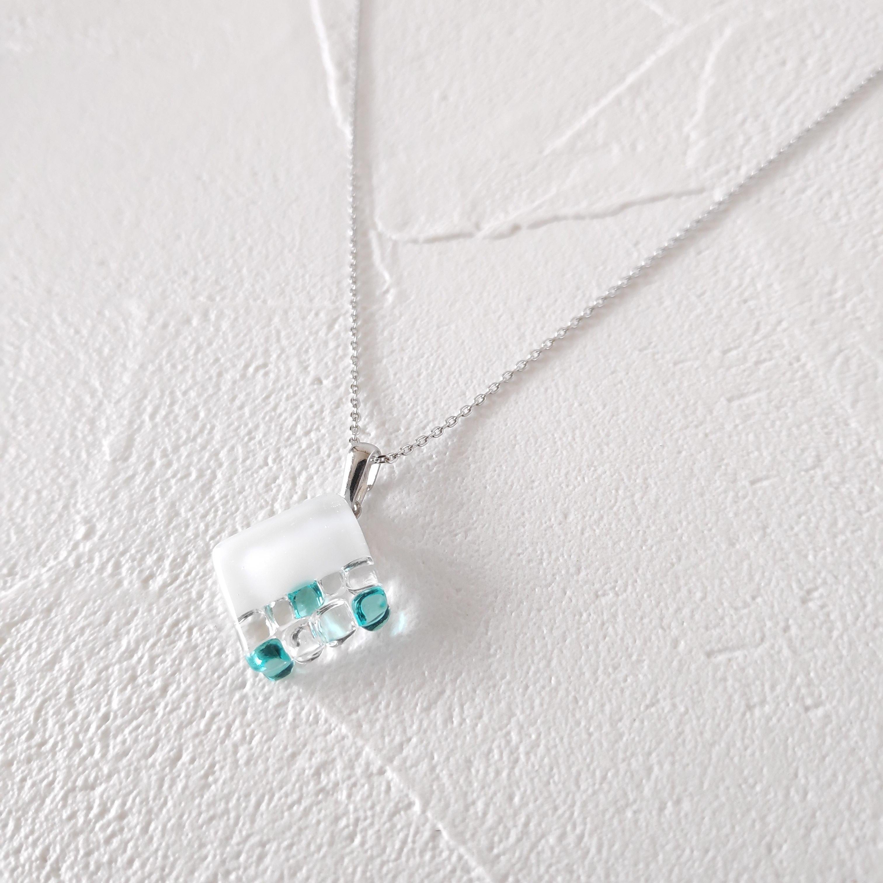 天気雨の雨粒ガラスのネックレス オパール色 (chain color gold)